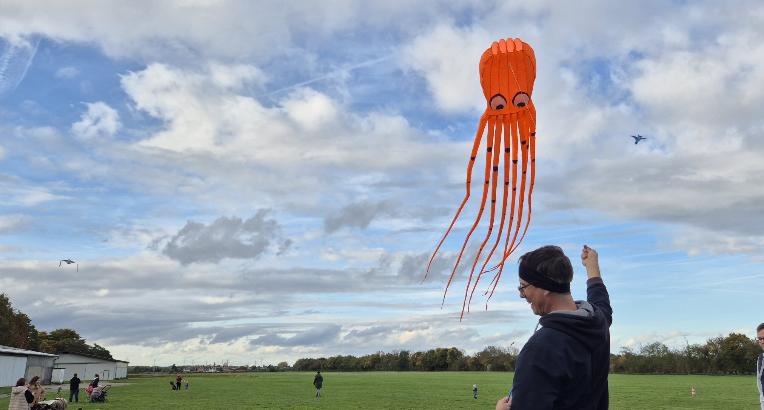 Wenn Kraken, Einhörner und anderes Getier am Himmel über dem Bensheimer Segelflugplatz tanzen, dann findet das Drachenfest des Familienzentrums Bensheim statt. Sehr zur Freude der vielen Kinder wehte dieses Jahr ein kräftiger Wind, der zur Freude der Eltern die Regenwolken rechtzeitig wegpustete.