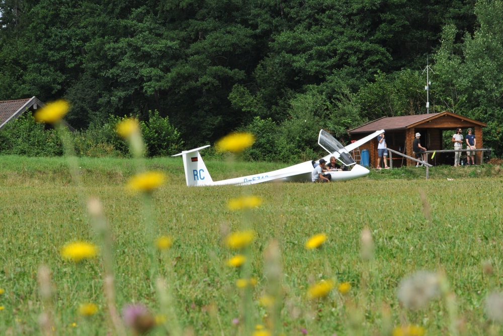 Aber für den Schulungsbetrieb gerade richtig. Dank zwei importierter Vorseile mit roter Sollbruchstelle können die Starts der Einsitzer vereinfacht und die Frequenz erhöht werden. So kommen alle Vereinseinsitzer zügig in die Luft, die Flugdauer schwankt zwischen fünf Minuten und zwei Stunden. Nicht immer halten die schönen Wolken dass, was sie versprechen. Sie halten sich wohl eher an die bayrische Philosophie, wo Fremde „Nicht-Bayern“ sind, die man mit einer gewissen Gleichgültigkeit behandeln darf und wo manches anders läuft, als man als Gast denkt…